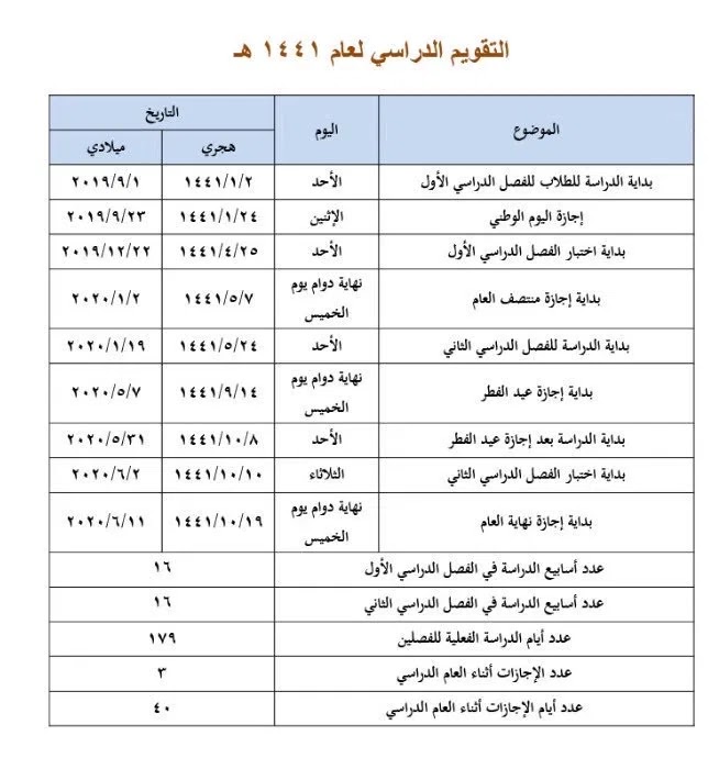 اعرف موعد بداية الدراسة للعام 1441 التقويم الدراسي 1441 هجريا