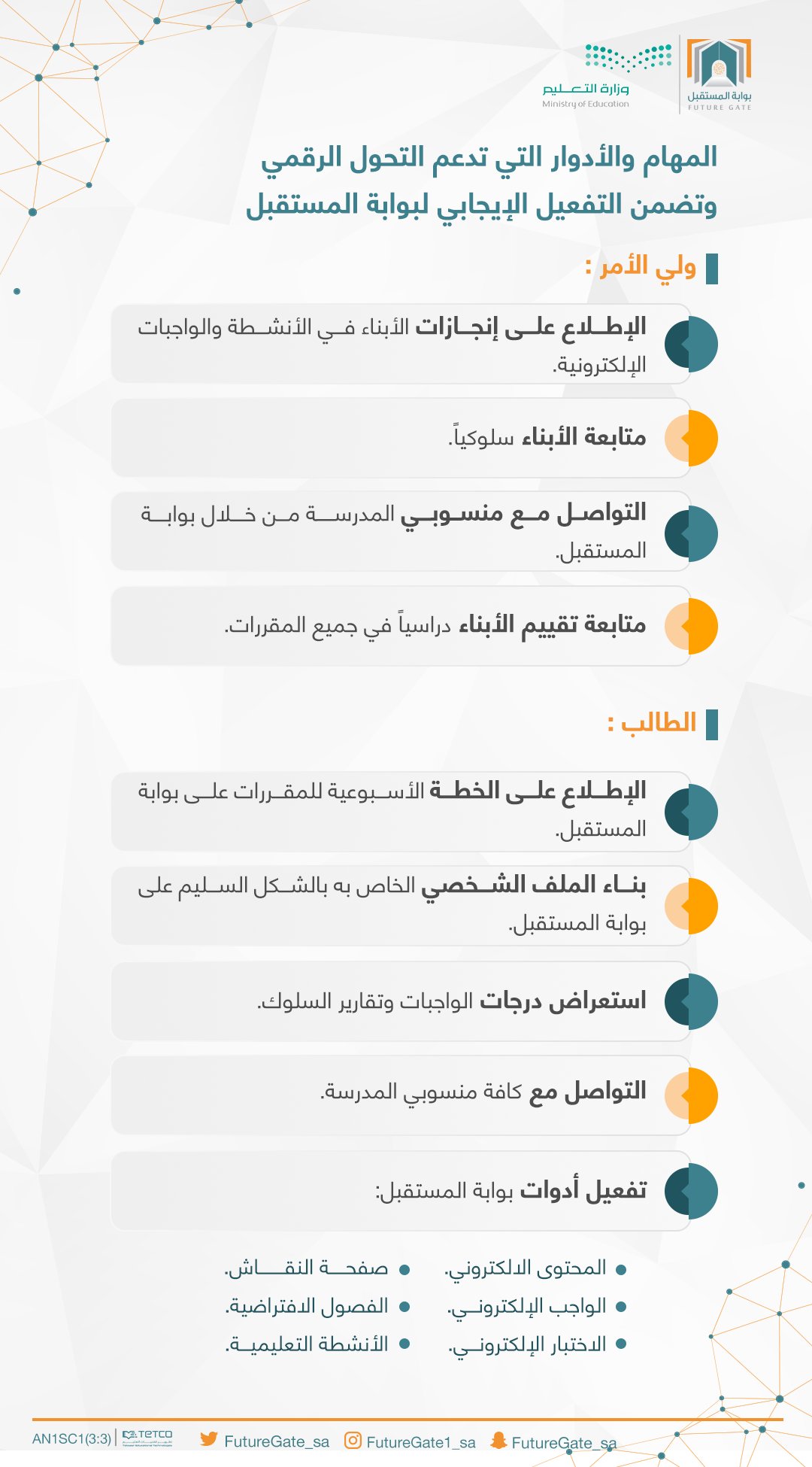 بوابة المستقبل On Twitter مهام وأدوار ولي الأمر والطالب التي تدعم التحول الرقمي وتضمن التفعيل الإيجابي بوابة المستقبل بوابة المستقبل مستقبل ابنائنا Https T Co Avhuvhjjud