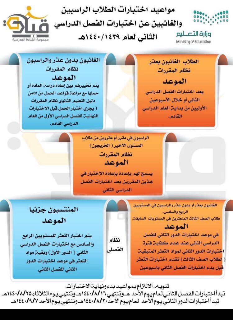 O Xrhsths عبدالله العازمي Sto Twitter مواعيد اختبارات الطلاب ات الراسبين والغائبين عن اختبارات الفصل الدراسي الثاني لعام 1439 ـ 1440 هـ